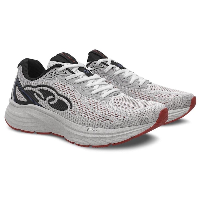 a tecnologia Eleva+ para conforto e amortecimento, proporcionando o efeito trampolim, e sua sola apresenta conforto e resiliência, com