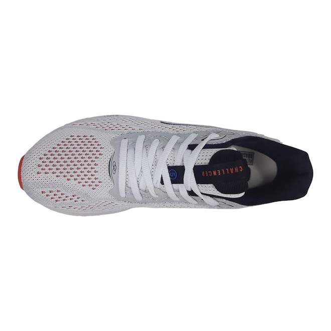 Possui forro de tecido poliéster com espuma, atacador bicolor composto por tecido poliéster texturizado e lingueta em tecido dupla frontura com alta capacidade de transpiração com fita puxador com aplicação gráfica bicolor. Sua palmilha é plana, composta por tecido poliéster e EVA, com aplicação gráfica. Indicado para Corrida, Academia, Caminhada e dia a dia!Modelo: Challenger 5;