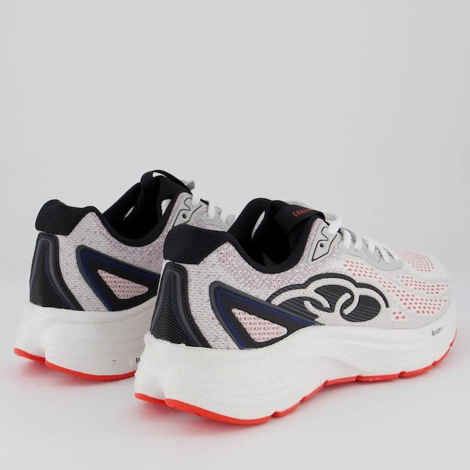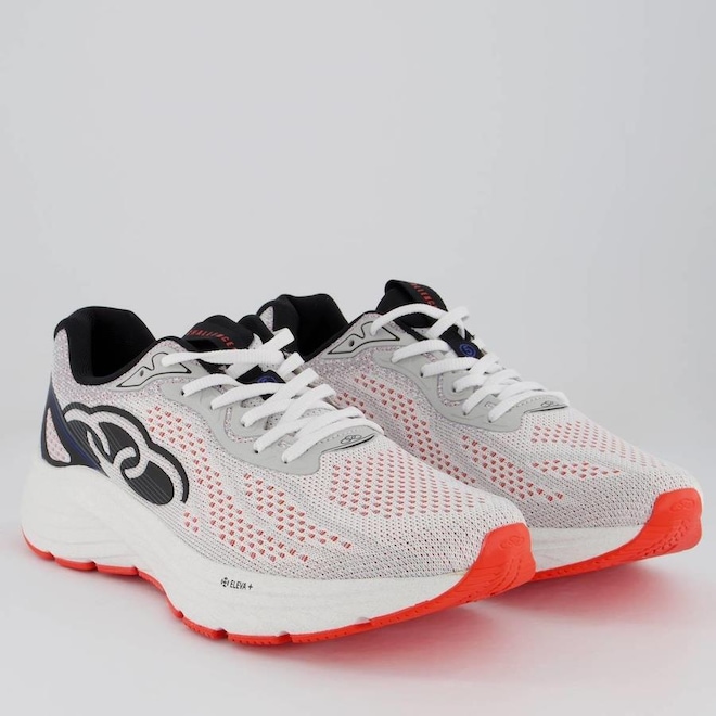 Eleva+: Tecnologia que explora o limite de expansão do EVA para alcançar máxima resposta, proporcionando o efeito trampolim, absorvendo o impacto da passada e transformando essa energia em impulsão.
