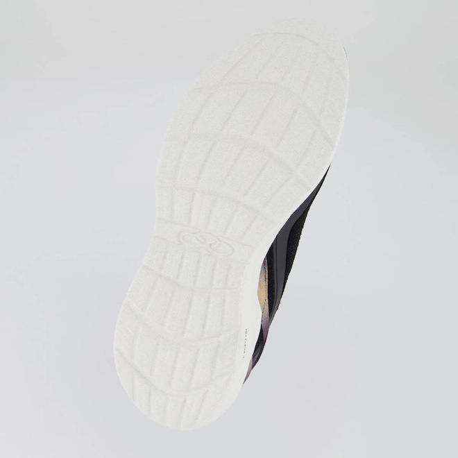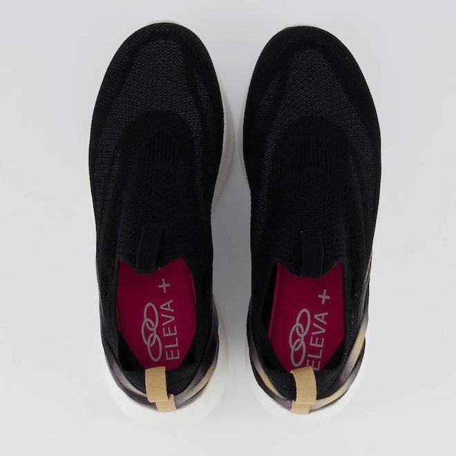 Eleva+: Tecnologia que explora o limite de expansão do EVA para alcançar máxima resposta, proporcionando o efeito trampolim, absorvendo o impacto da passada e transformando essa energia em impulsão.