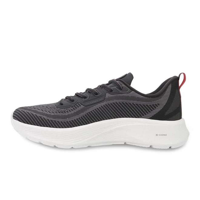 O Olympikus Conex é um tênis que traz um visual de movimento, combinando resistência e versatilidade. Possui solado com tecnologia de amortecimento Evasense, que proporciona leveza, maciez e flexibilidade nas passadas. Seu cabedal é confeccionado em tecido jacquard com arte gráfica com linhas orgânicas. Conta ainda com detalhes em laminado que levam a tecnologia High Frequency. A lingueta surge em confortável combinação de tecido dupla frontura. Seu atacador é composto por tecido texturizado e o forro macio. Além disso, conta com palmilha anatômica composta por EVA forrada, com aplicação gráfica.