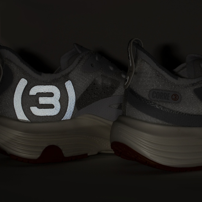 No contraforte, o suporte acolchoado ajuda a minimizar o desconforto do atrito de contato com puxador refletivo que aumenta sua visibilidade e segurança na corrida noturna.
