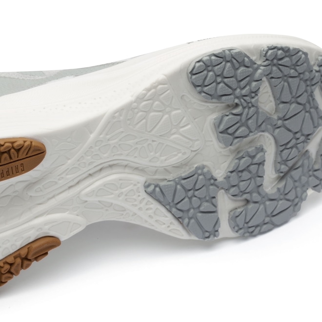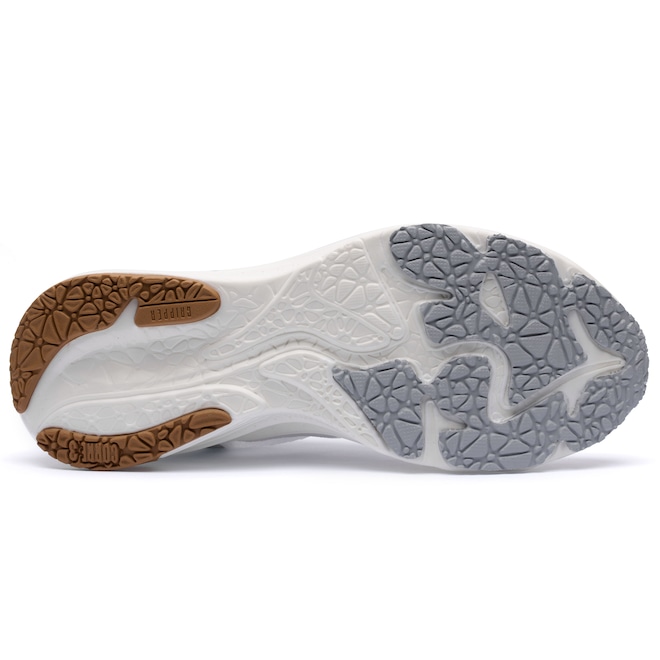 Já o solado é desenvolvido com duas tecnologias para maior segurança nas passadas: