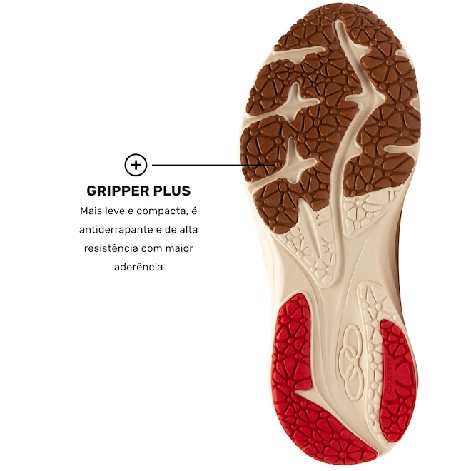 Para tração e estabilidade, o solado Gripper Plus oferece aderência superior em diferentes superfícies, tornando este tênis perfeito para quem busca performance com propósito.