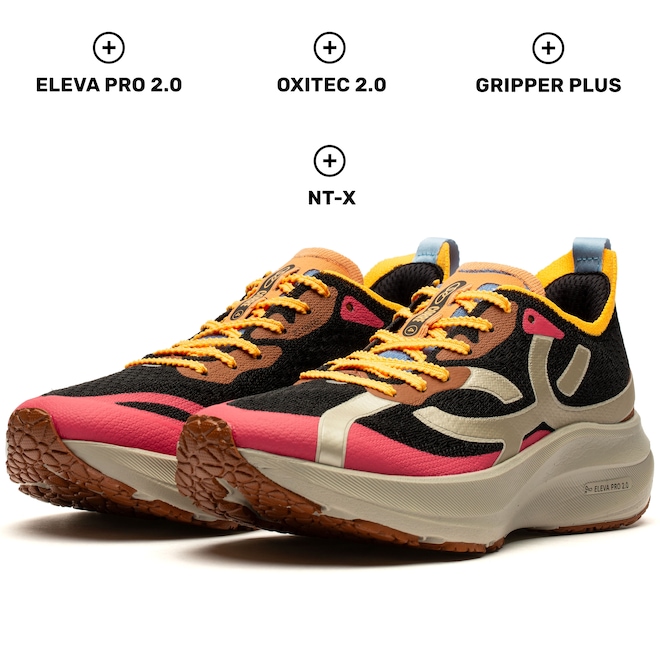 Equipado com a tecnologia ELEVA PRO, o amortecimento garante máxima resposta em cada passada, mantendo o conforto e a durabilidade que você precisa para encarar treinos e provas.