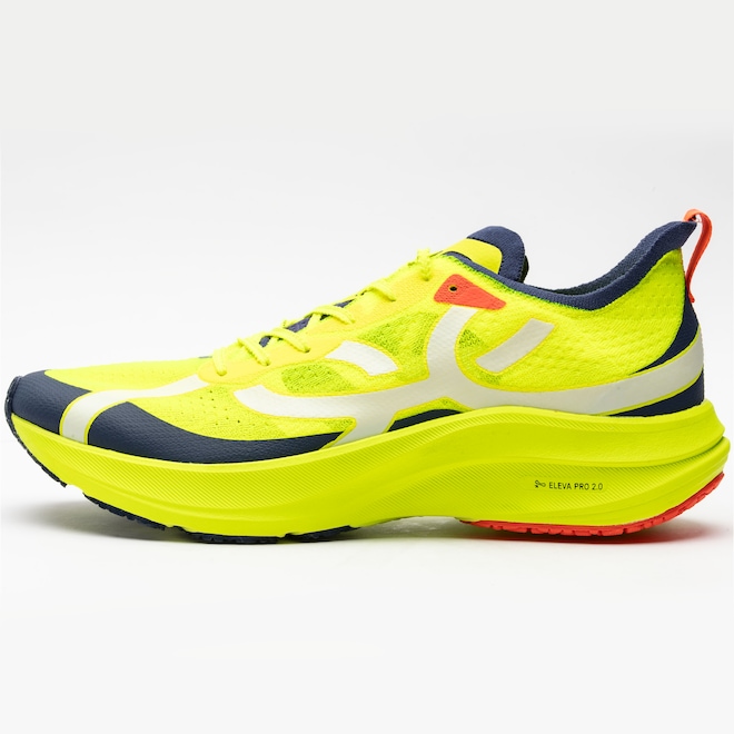Equipado com a tecnologia ELEVA PRO, o amortecimento garante máxima resposta em cada passada, mantendo o conforto e a durabilidade que você precisa para encarar treinos e provas.