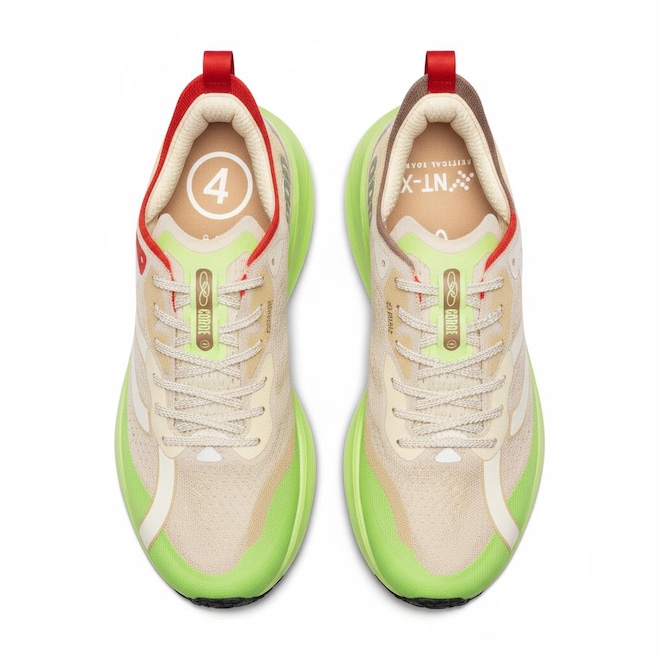 Já a entressola com NT-X, expandida com nitrogênio, garante que o EVA sofra menos deformação, voltando ao seu estado original após cada uso, prolongando a vida útil do tênis e proporcionando uma sensação de novo por mais tempo.