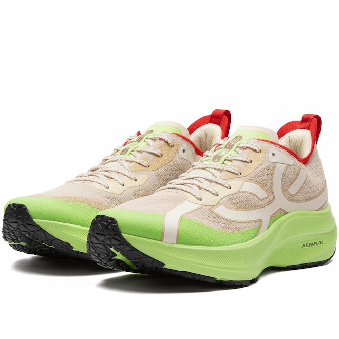 Equipado com a tecnologia ELEVA PRO, o amortecimento garante máxima resposta em cada passada, mantendo o conforto e a durabilidade que você precisa para encarar treinos e provas.