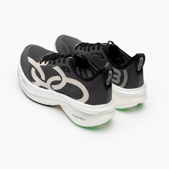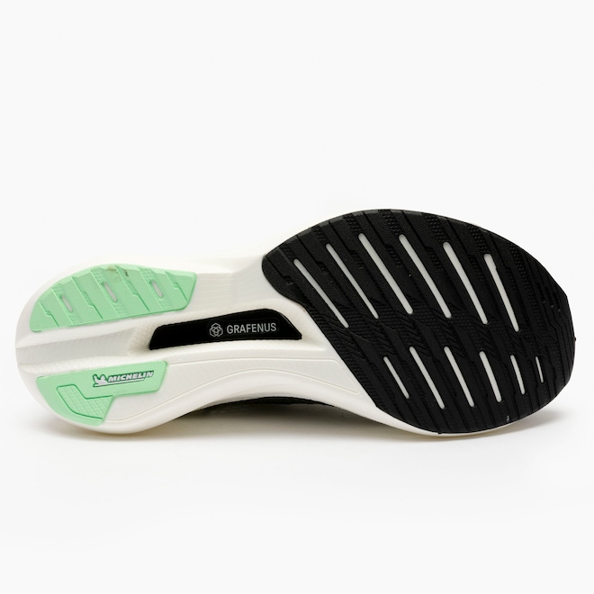 O Corre Grafeno 3 possui Placa com Grafeno de 1.8mm de espessura. Sua composição garante rigidez, máxima propulsão, retorno de energia e efeito trampolim. Possui entressola superior com tecnologia NT-X em ATPU expandido com nitrogênio (SCF), proporcionando nível máximo de amortecimento, baixa deformação e extrema leveza ao tênis.Já a entressola inferior é feita pela nova tecnologia Eleva Pro 2.0, aumentando os índices de resiliência, conforto e responsividade indispensáveis para a corrida. Outra característica que aumenta ainda mais o seu desempenho são as borrachas antiderrapantes em design colaborativo com a Michelin, marca de pneus reconhecida mundialmente, que proporcionam maior durabilidade e alta resistência ao calçado.