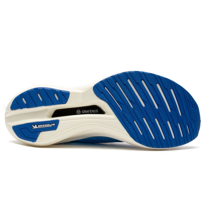 O Corre Grafeno 3 possui Placa com Grafeno de 1.8mm de espessura. Sua composição garante rigidez, máxima propulsão, retorno de energia e efeito trampolim. Possui entressola superior com tecnologia NT-X em ATPU expandido com nitrogênio (SCF), proporcionando nível máximo de amortecimento, baixa deformação e extrema leveza ao tênis.Já a entressola inferior é feita pela nova tecnologia Eleva Pro 2.0, aumentando os índices de resiliência, conforto e responsividade indispensáveis para a corrida. Outra característica que aumenta ainda mais o seu desempenho são as borrachas antiderrapantes em design colaborativo com a Michelin, marca de pneus reconhecida mundialmente, que proporcionam maior durabilidade e alta resistência ao calçado.