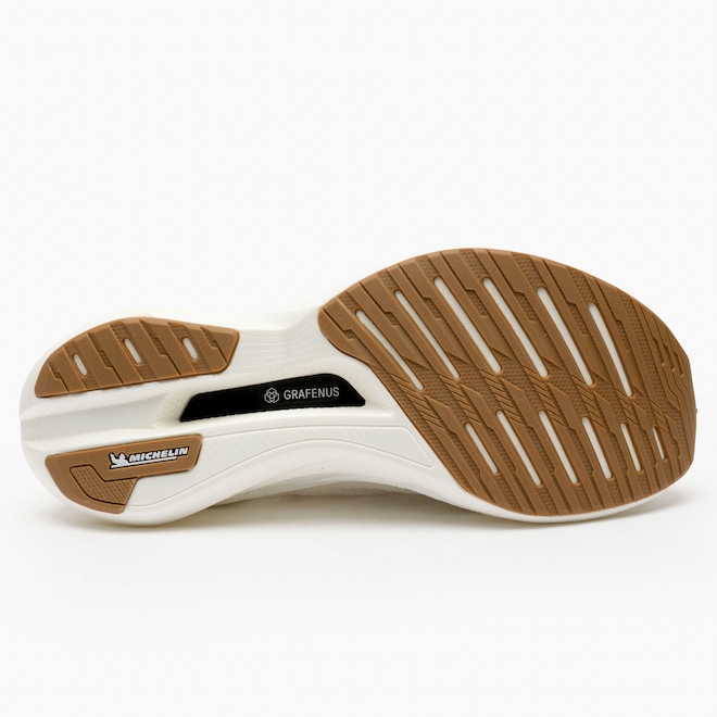 O Corre Grafeno 3 possui Placa com Grafeno de 1.8mm de espessura. Sua composição garante rigidez, máxima propulsão, retorno de energia e efeito trampolim. Possui entressola superior com tecnologia NT-X em ATPU expandido com nitrogênio (SCF), proporcionando nível máximo de amortecimento, baixa deformação e extrema leveza ao tênis.Já a entressola inferior é feita pela nova tecnologia Eleva Pro 2.0, aumentando os índices de resiliência, conforto e responsividade indispensáveis para a corrida. Outra característica que aumenta ainda mais o seu desempenho são as borrachas antiderrapantes em design colaborativo com a Michelin, marca de pneus reconhecida mundialmente, que proporcionam maior durabilidade e alta resistência ao calçado.