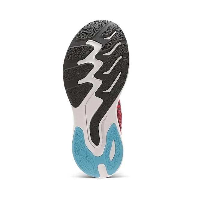 Borracha antiderrapante que garante contato firme com o chão. Seu desenho curvilíneo com pontos de contato distribuídos em seções favorecem a flexão e aderência.