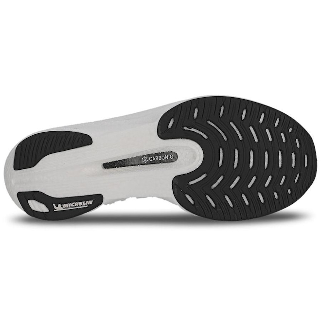 Possui placa de impulsão inédita: Carbono + Grafeno, a tecnologia exclusiva Olympikus Carbon G é o resultado de uma placa de impulsão de carbono de primeira linha com revestimento em grafeno, essa junção de materiais trouxe resultados surpreendentes nos testes já realizados. A entressola externa também conta com a tecnologia NT-X, a segunda camada da nossa entressola - logo abaixo da placa de impulsão - utiliza o Pebax® expandido com nitrogênio em alta pressão e temperatura.