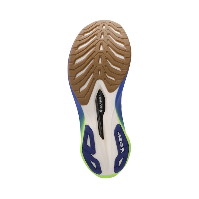 O solado e de borracha e conta com a tecnologia GRIPPER, que oferece alta resistencia a abrasao e tracao superior em superficies de asfalto. Essa borracha e estrategicamente posicionada para garantir durabilidade e aderencia confiavel em cada pisada.