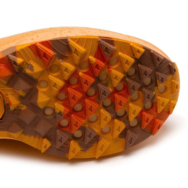 O solado com Vibram® fornece tração máxima, durabilidade e resistência, adaptando-se a diferentes superfícies e condições.