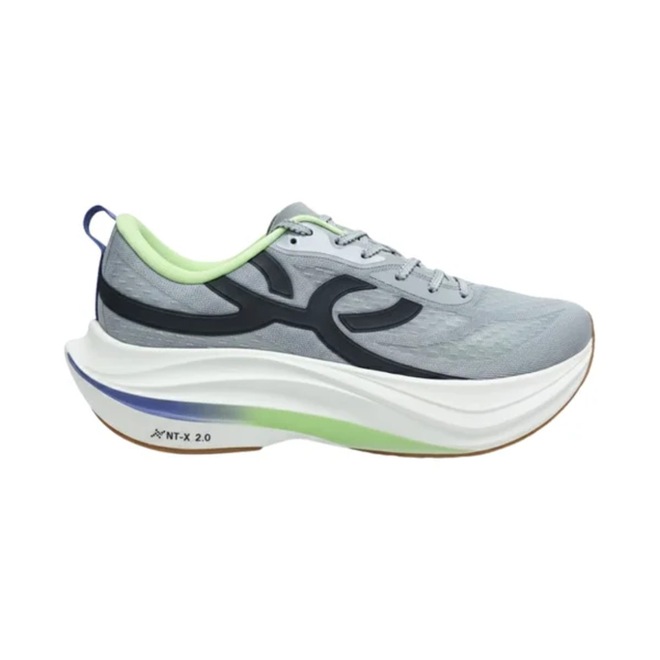 A entressola com a tecnologia NT-X 2.0 traz TPEE expandido com nitrogênio, oferecendo amortecimento máximo, alta resiliência e retorno de energia com baixa deformação.