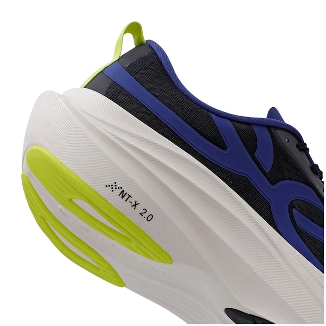 NT-X 2.0: Amortecimento Revolucionário: Com a entressola em TPE expandido com nitrogênio (SCF), o NT-X 2.0 oferece o nível máximo de amortecimento, garantindo uma corrida mais suave e protegida. Sua alta resiliência e baixa deformação resultam em um tênis extremamente leve que responde a cada impulso, otimizando sua energia.