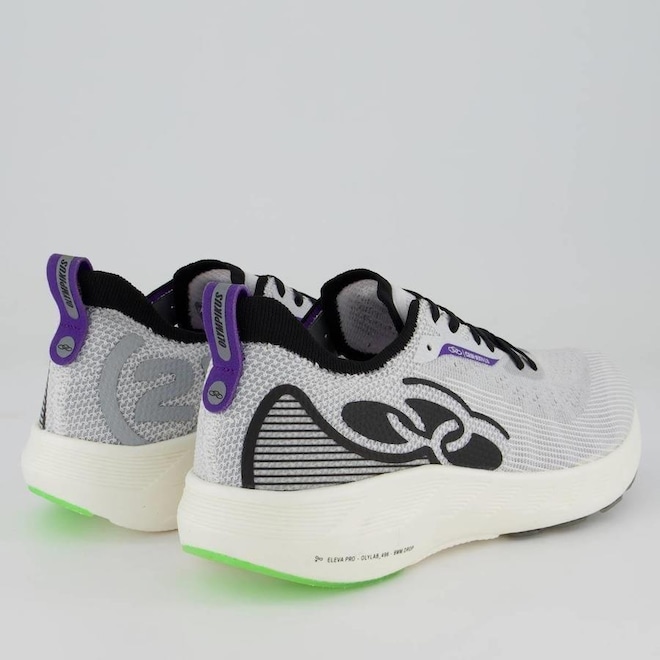 Já a tecnologia ELEVA PRO, na entressola com drop 8mm, explora o limite de expansão do EVA, garantindo amortecimento com máxima resposta, durabilidade e menos risco de deformação.