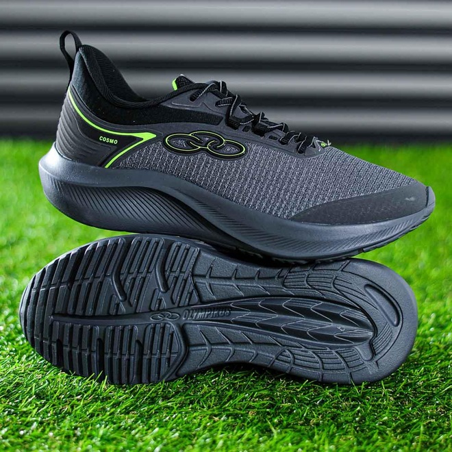 Tênis Olympikus Cosmo Grafite Preto e Verde ? Masculino. Para máxima leveza e conforto Ficha Técnica: Cor: Grafite, Preto e Verde Indicado para: Treino Solado: Borracha com tecnologia de amortecimento Evasense Cabedal: Tecido resistente e respirável Fechamento: Cadarço em poliéster texturizado Altura do Cano: Cano baixo Gênero: Masculino Marca: Olympikus   Conteúdo da embalagem: 1 par de Tênis Olympikus Cosmo Grafite Preto e Verde - Masculino   O Tênis Olympikus Cosmo combina leveza, estilo e conforto, ideal para quem busca um parceiro moderno para os treinos. Seu solado com a tecnologia Evasense oferece amortecimento responsivo, proporcionando leveza a cada passo. O cabedal confeccionado em tecido garante ótima transpiração e durabilidade, enquanto a peça em TPU com tecnologia Supporter traz estabilidade nas passadas. A palmilha anatômica em poliéster e EVA garante conforto adicional, e o puxador traseiro facilita o calce.