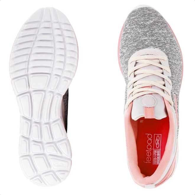 Palmilha Feetpad, que memoriza o formato dos pés, oferece alto conforto devido à espuma visco elástica de alta densidade.
