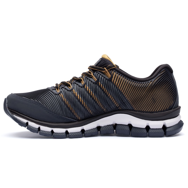 Com estrutura em material sintético, esse Tênis Masculino conta com fios de tensão que atuam em conjunto com o ajuste oferecendo suporte e estabilidade, durante suas caminhadas e exercícios, dentro e fora da academia.