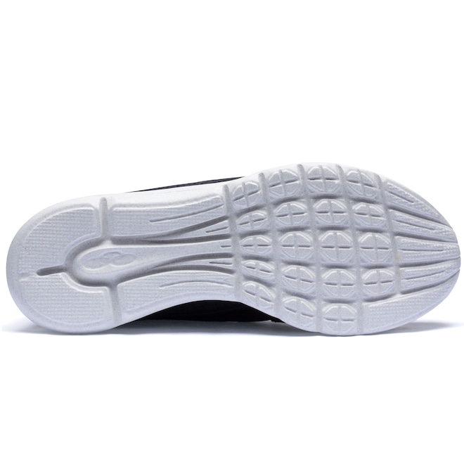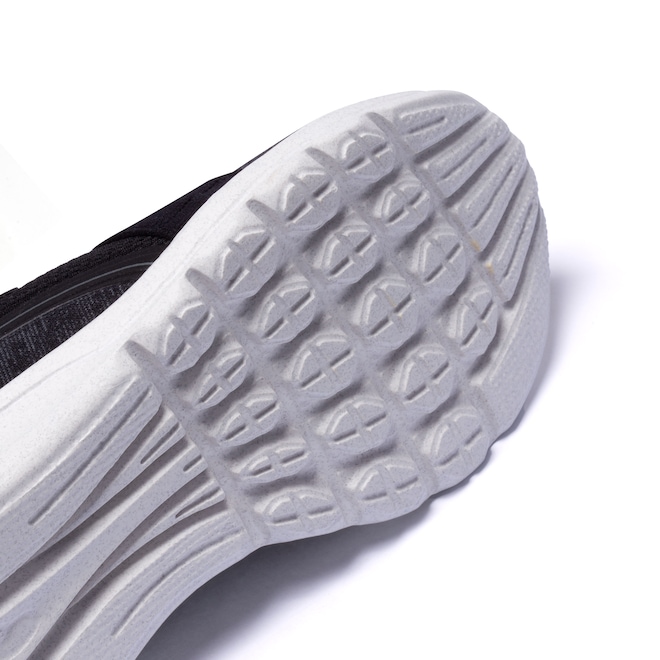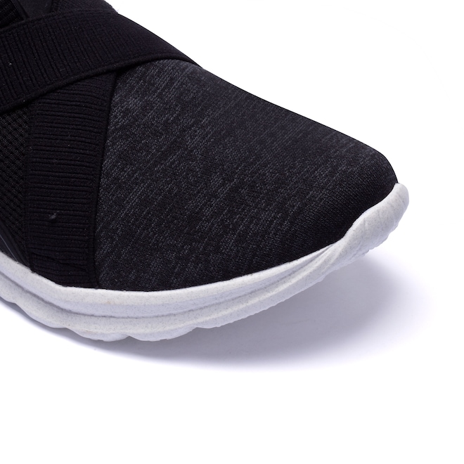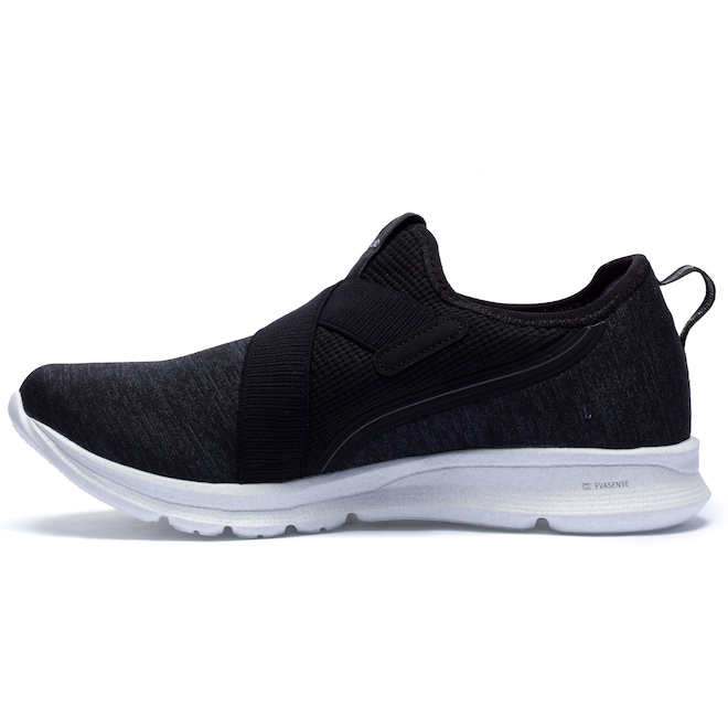 Ainda conta com lingueta integrada e modelagem Slip-On, facilitando o calçar, o contraforte tem suporte acolchoado e a palmilha é macia.