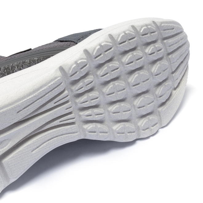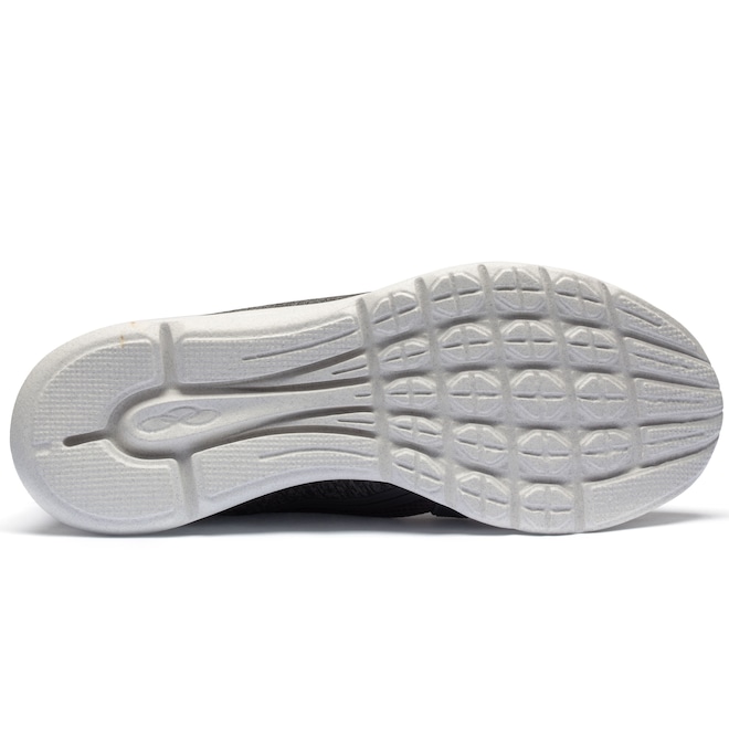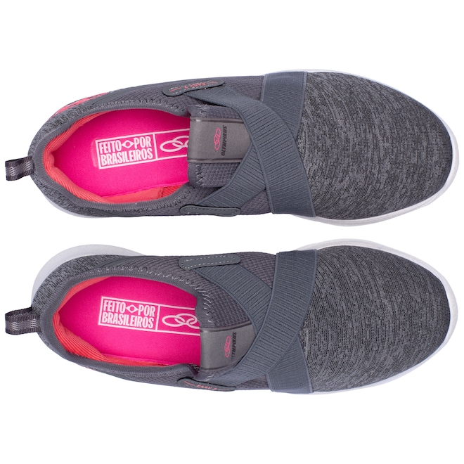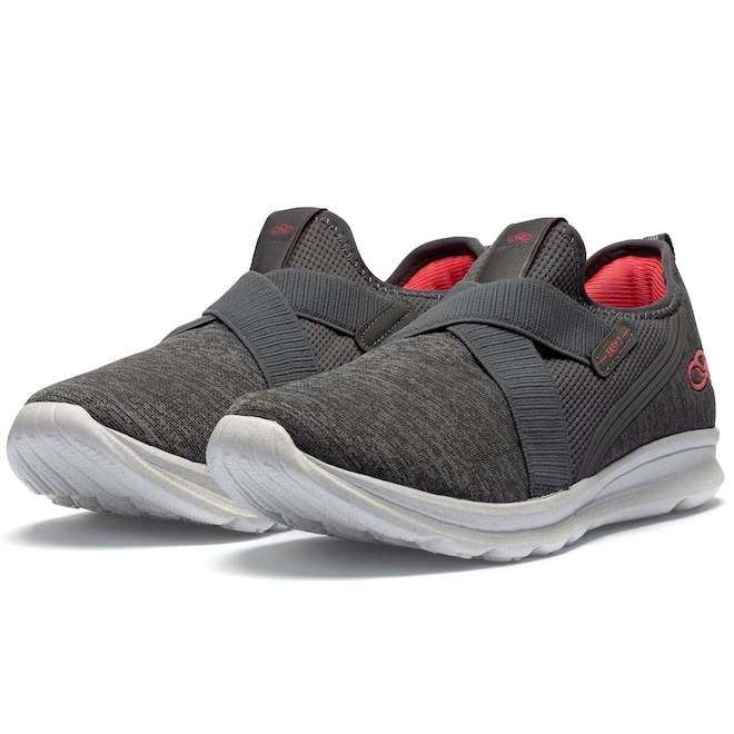 Ainda conta com lingueta integrada e modelagem Slip-On, facilitando o calçar, o contraforte tem suporte acolchoado e a palmilha é macia.