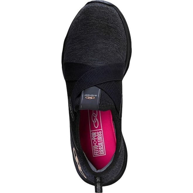 Ainda conta com lingueta integrada e modelagem Slip-On, facilitando o calçar, o contraforte tem suporte acolchoado e a palmilha é macia.