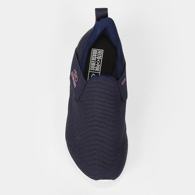 Possui ainda forro em tecido poliéster com espuma e puxador em fita bicolor para auxiliar no calce.