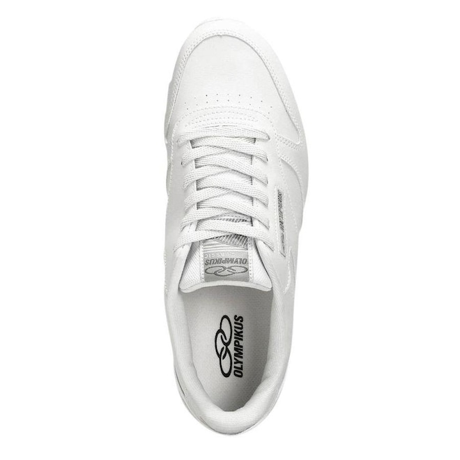 O Olympikus Jogging 100 tem cabedal em laminado sintético e emborrachado bicolor personalizado aplicado na lateral.