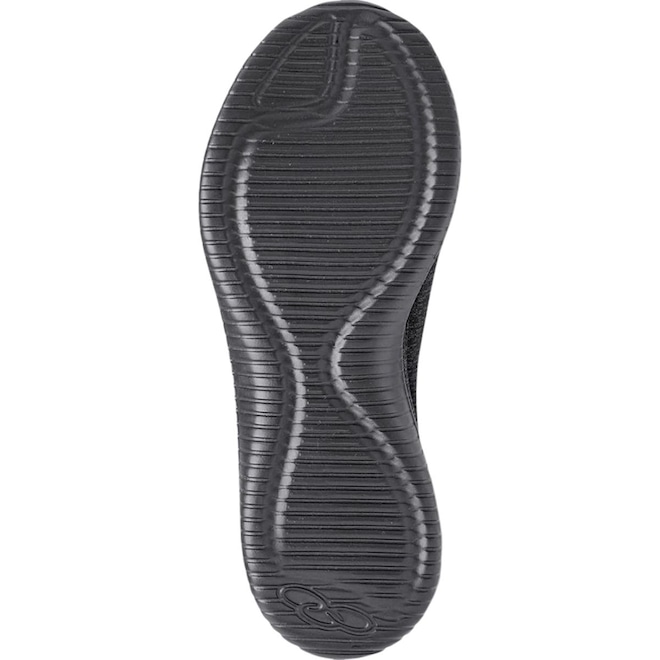 O cabedal é confeccionado em tecido de poliéster com toque macio, permitindo maior conforto e respirabilidade.