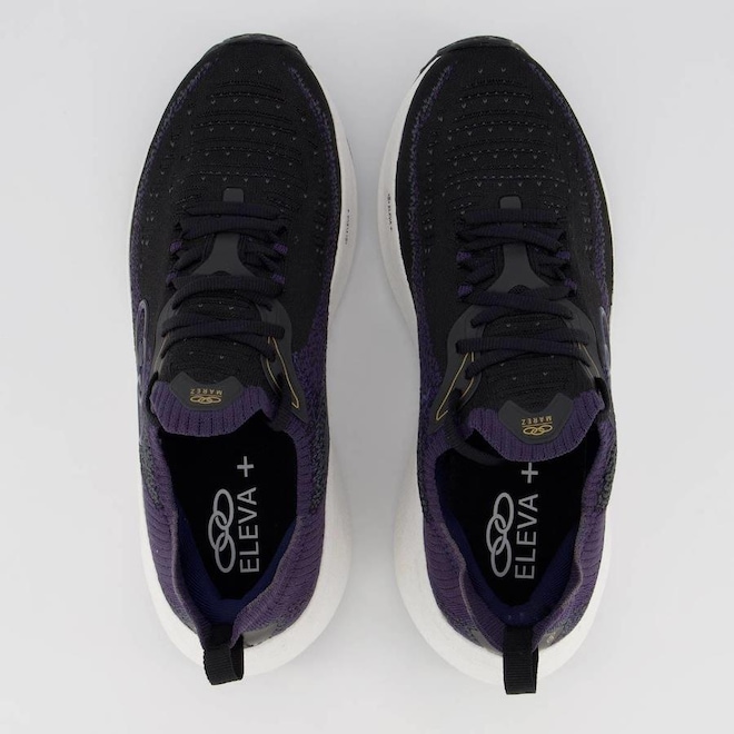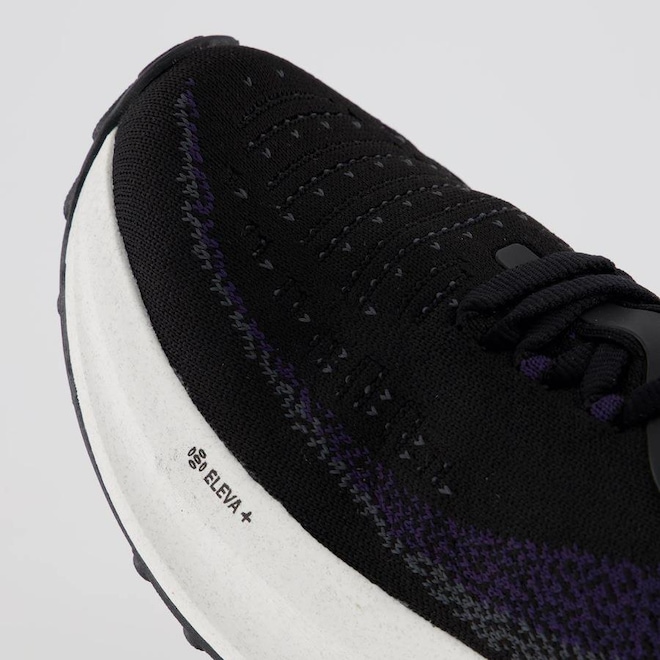 Eleva+ : Tecnologia que explora o limite de expansão do EVA para alcançar máxima resposta, proporcionando o efeito trampolim, absorvendo o impacto da passada e transformando essa energia em impulsão.