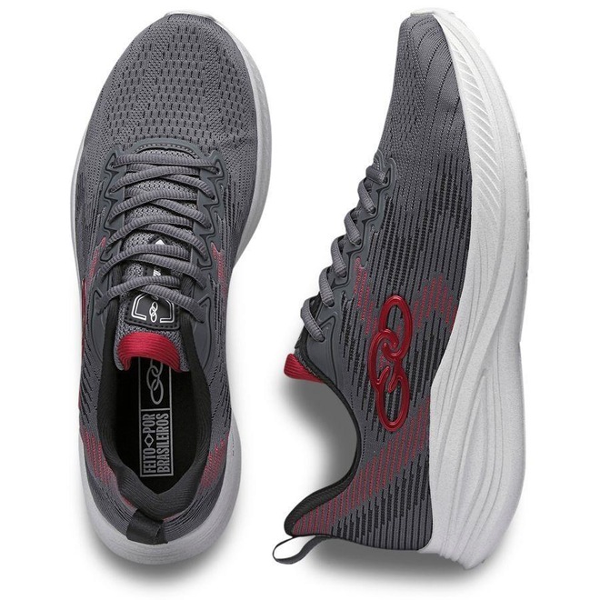 Possui ainda linguetaem tecido dupla frontura com alta capacidade de transpiração com etiqueta de sintético em high frequency e aplicação gráfica e logotipo Olympikus em alto brilho.