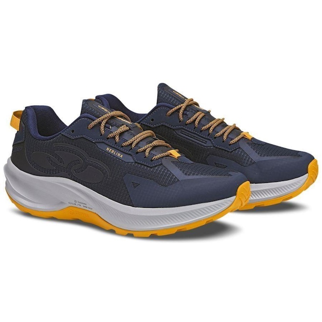 - Sobre o produto - Tênis Olympikus Neblina - Unissex- Tênis Olympikus Neblina - Adulto O Olympikus Neblina é um dos nossos lançamentos para a corrida em trilhas. Seu solado possui a tecnologia de amortecimento Evasense, que proporciona leveza, maciez e maior flexibilidade. Com design minimalista e linhas que remetem a velocidade, conta também com a tecnologia Gripper. A borracha antiderrapante proporciona maior aderência e resistência à abrasão, além de garras de tração facetadas e pontiagudas para oferecer aderência em qualquer terreno. Seu cabedal foi desenvolvido com tecido de poliéster resistente e respirável, que proporciona leveza e ventilação adicional, contribuindo para a não absorção de líquidos, com detalhes em high frequency com visual de alto relevo e aplicação gráfica. Conta com forro em tecido poliéster com espuma, atacador de poliéster texturizado bicolor, aplicação de laminado PVC 0.4 disposta em lugares estratégicos para suporte e estrutura adicionais, vista diferenciada com passadores de atacador para melhor ajuste. Possui ainda fita traseira com peça refletiva para segurança noturna e lingueta com tela jacquard com peça em TPU e logotipo em serigrafia. Sua palmilha é plana, composta por tecido poliéster e EVA, com aplicação gráfica. TECNOLOGIA: EVASENSE - A tecnologia da Olympikus em EVA para máxima maciez e conforto absoluto. REFLETIVO - A tecnologia refletiva da Olympikus aplicada em pontos estratégicos para oferecer segurança em atividades noturnas. GRIPPER - A tecnologia da Olympikus com borracha compacta antiderrapante e de alta resistência.- ref: M0ZQO0
