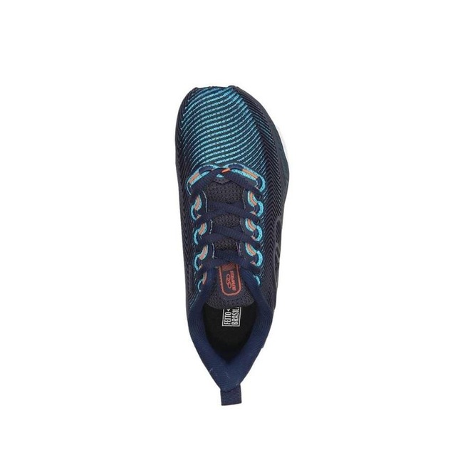 Sua palmilha é anatômica, composta por tecido poliéster e EVA.