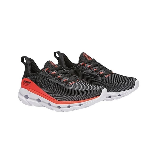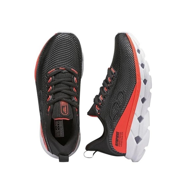 Sua palmilha é anatômica, composta por tecido poliéster e EVA.