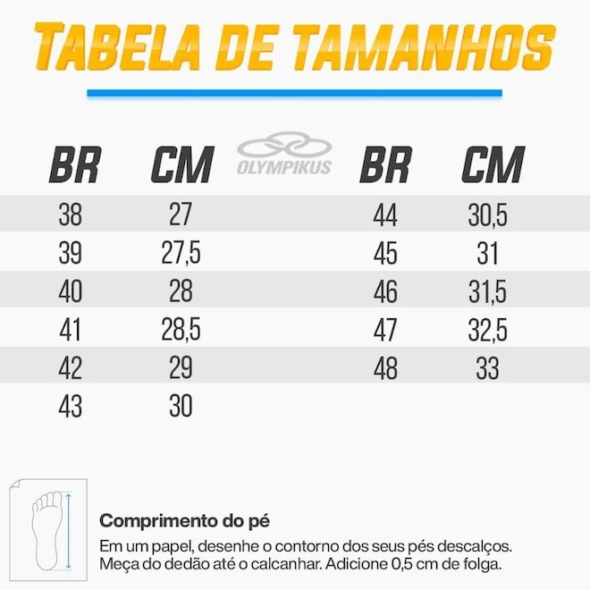 Peso do Produto: 275 g (o peso varia de acordo com a numeração)