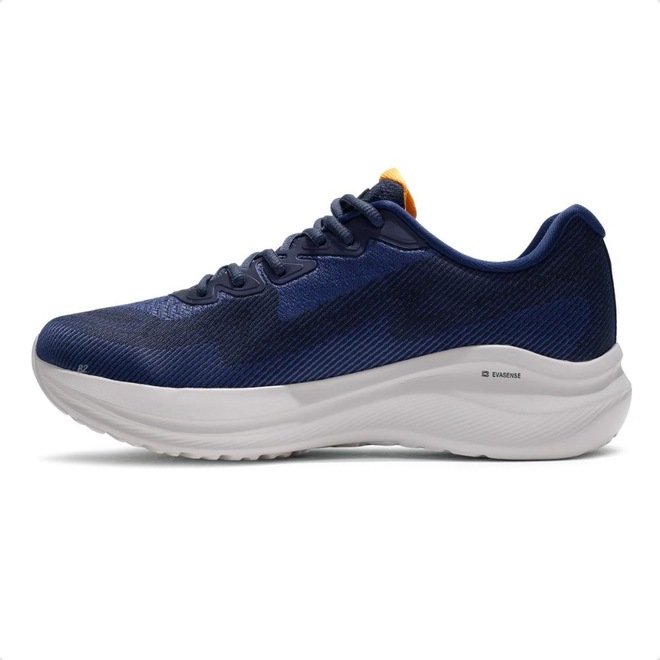O solado em EVA com tecnologia EVASENSE proporciona excelente amortecimento e absorção de impactos, garantindo conforto durante a pisada.