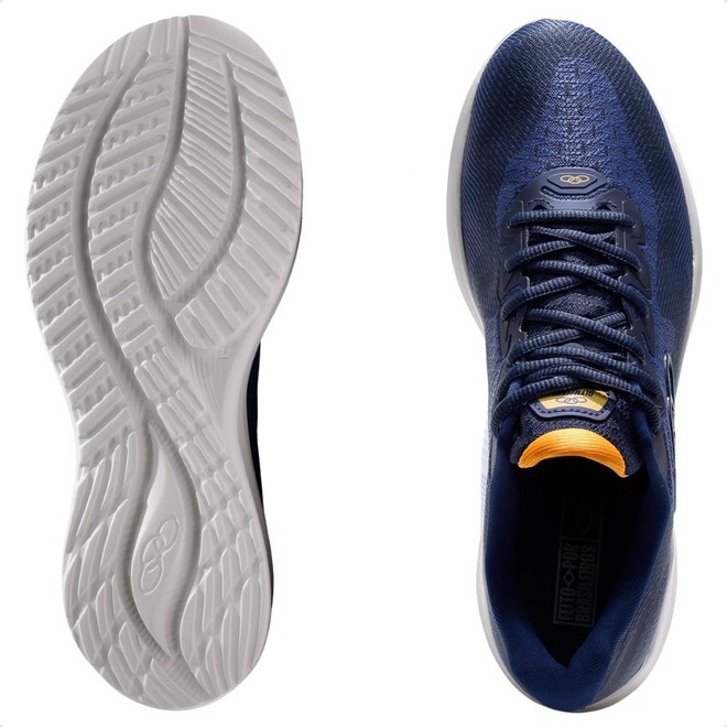Logo da Olympikus, símbolo de qualidade e performance, está presente no cabedal e na palmilha.