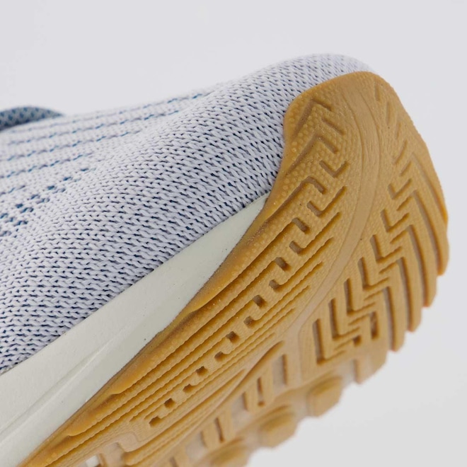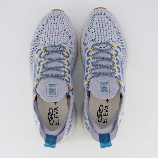 Eleva+: Tecnologia que explora o limite de expansão do EVA para alcançar máxima resposta, proporcionando o efeito trampolim, absorvendo o impacto da passada e transformando essa energia em impulsão.