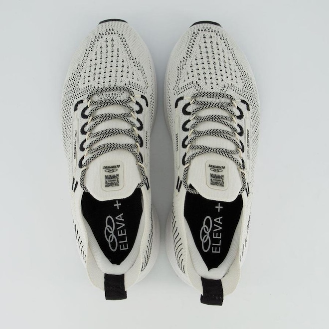 Eleva+: Tecnologia que explora o limite de expansão do EVA para alcançar máxima resposta, proporcionando o efeito trampolim, absorvendo o impacto da passada e transformando essa energia em impulsão.