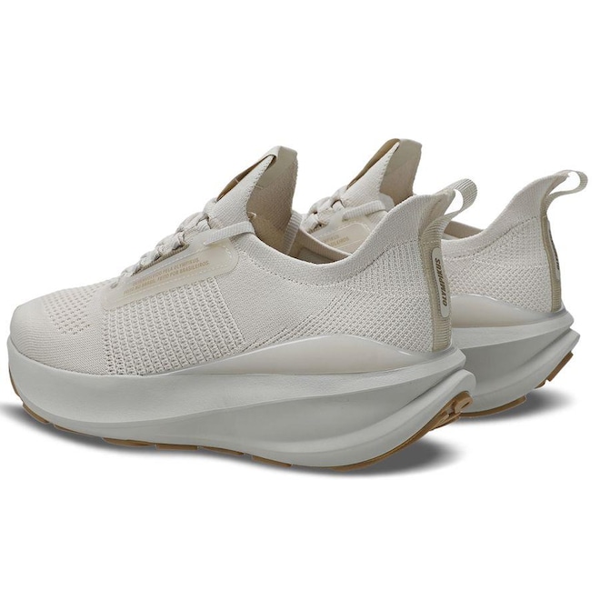 O detalhe traseiro e o passante injetado em TPU translúcido adicionam um toque moderno à peça, enquanto o sistema de amarração com cordão ajuda a compor o visual. O atacador é feito de tecido poliéster texturizado, o forro é de tecido poliéster com espuma para maior conforto, e o puxador traseiro em fita de monofilamento auxilia no calce.