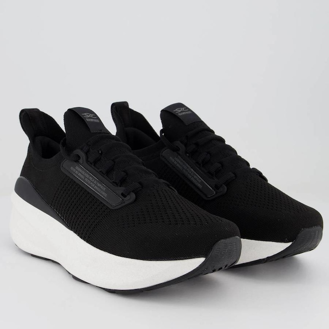 Eleva+: Tecnologia que explora o limite de expansão do EVA para alcançar máxima resposta, proporcionando o efeito trampolim, absorvendo o impacto da passada e transformando essa energia em impulsão.Composição cabedal (parte superior): Têxtil com partes em sintético