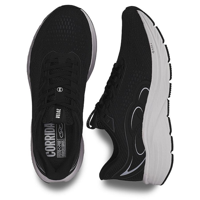 O Olympikus Veloz 3 chega a sua terceira edição para continuar inspirando as suas corridas diárias. Seu solado possui tecnologia Eleva+ que proporciona conforto, amortecimento e um efeito trampolim. Apresenta borracha Gripper, que garante o contato firme com o chão durante as caminhadas. Seu desenho curvilíneo com pontos de contato distribuídos em seções favorecem a flexão e aderência. O cabedal é confeccionado em double Jacquard bicolor, e sua lingueta em dupla frontura, confere ao produto alta respirabilidade e flexibilidade, proporcionando maior desempenho e conforto durante a atividade física. Apresenta logo aplicado em high frequency com material de espessura mínima de 0,25mm, garantindo extrema leveza e resistência. Seu atacador é confeccionado por tecido poliéster texturizado que resulta em 3x mais força de amarração. Conta ainda com puxador traseiro em fita bicolor para auxiliar no calce e forro em tecido poliéster dublado com espuma de 4mm. Além disso, possui palmilha em EVA moldada composta por tecido poliéster, oferecendo melhor calce e conforto.