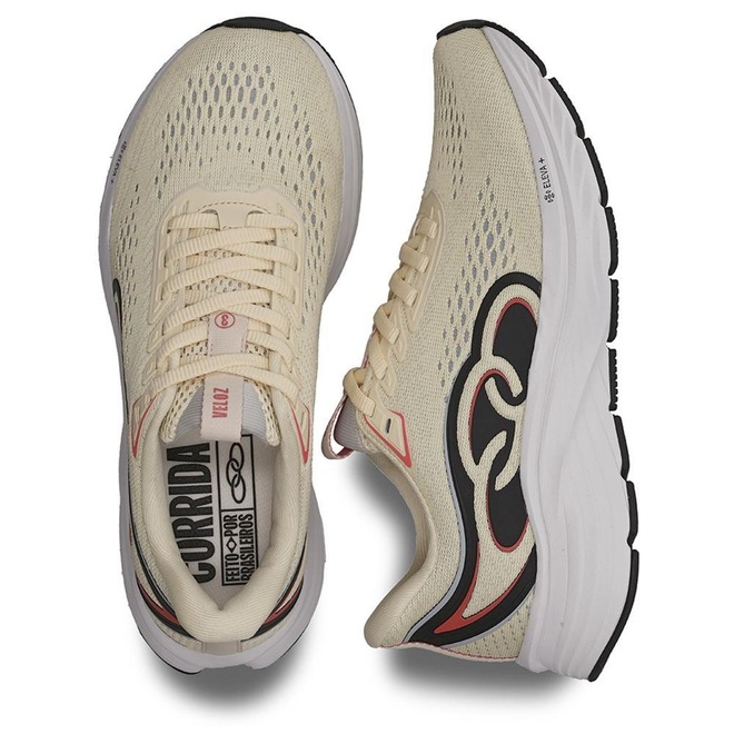 O Olympikus Veloz 3 chega a sua terceira edição para continuar inspirando as suas corridas diárias. Seu solado possui tecnologia Eleva+ que proporciona conforto, amortecimento e um efeito trampolim. Apresenta borracha Gripper, que garante o contato firme com o chão durante as caminhadas. Seu desenho curvilíneo com pontos de contato distribuídos em seções favorecem a flexão e aderência. O cabedal é confeccionado em double Jacquard bicolor, e sua lingueta em dupla frontura, confere ao produto alta respirabilidade e flexibilidade, proporcionando maior desempenho e conforto durante a atividade física. Apresenta logo aplicado em high frequency com material de espessura mínima de 0,25mm, garantindo extrema leveza e resistência. Seu atacador é confeccionado por tecido poliéster texturizado que resulta em 3x mais força de amarração. Conta ainda com puxador traseiro em fita bicolor para auxiliar no calce e forro em tecido poliéster dublado com espuma de 4mm. Além disso, possui palmilha em EVA moldada composta por tecido poliéster, oferecendo melhor calce e conforto.