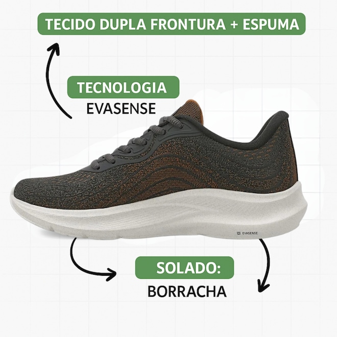 -Evasense: Tecnologia de amortecimento que proporciona leveza e maior responsividade para as atividades diárias.