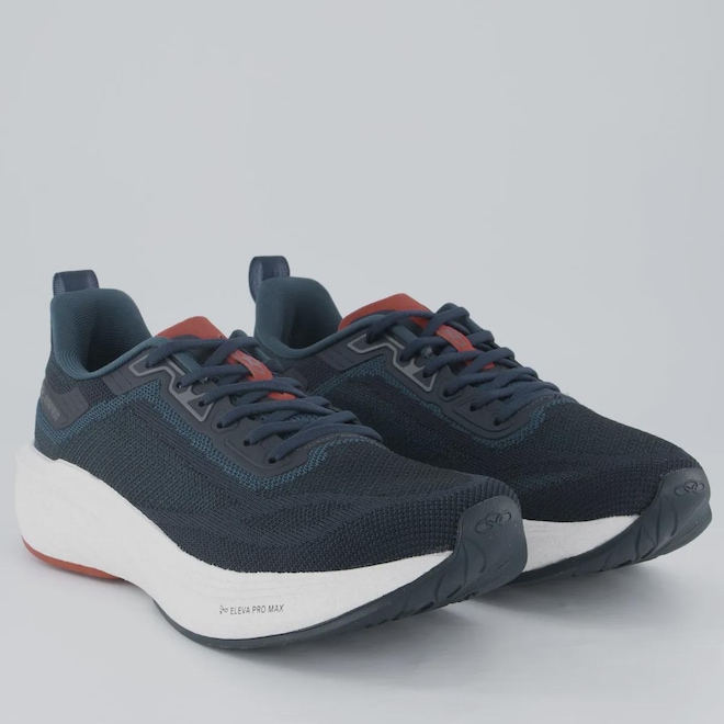 Eleva Pro Max: Amortecimento que garante máxima resposta, absorvendo o impacto da passada e transformando essa energia em impulsão, mantendo o conforto e durabilidade.Composição cabedal (parte superior): Material têxtil respirável