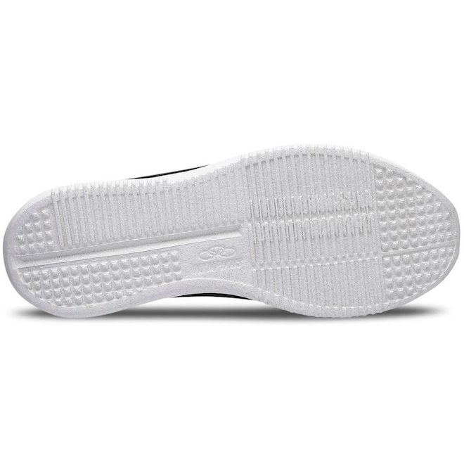 Sua palmilha é anatômica, composta por tecido poliéster e EVA, com aplicação gráfica.