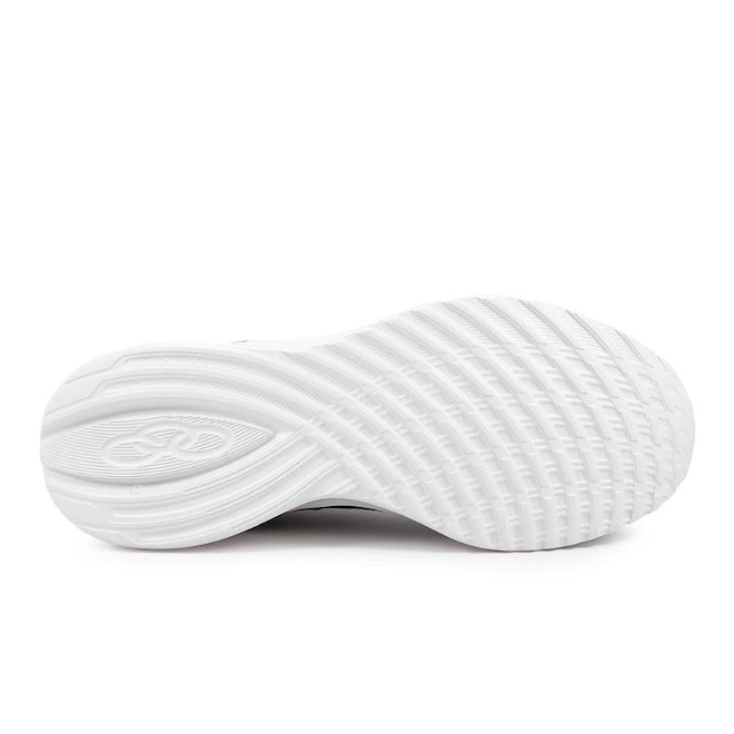 Já o cabedal é feito em tecido poliéster dublado com espuma, com textura trazendo um visual clean.