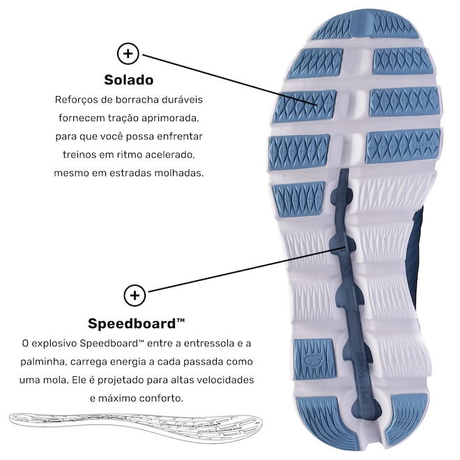 Speedboard™: Placa rígida que converte seu impulso em excelente propulsão e ótima resposta.